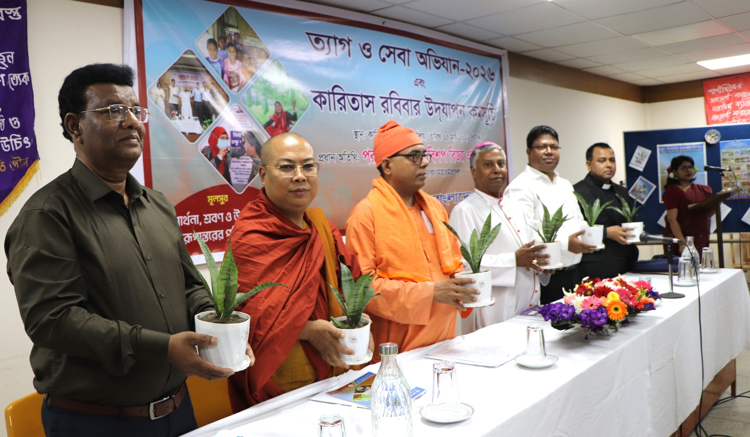 গত ১৫ মার্চ কারিতাস বাংলাদেশ এর কেন্দ্রীয় কার্যালয়ে উদযাপন করা হয় ত্যাগ ও সেবা অভিযান-২০২৬ ও কারিতাস রবিবার। এ বছরের প্রতিপাদ্য ছিল ‘প্রার্থনা, শ্রবণ ও উপবাস: আত্মরূপান্তরের পবিত্র আহ্বান।’ অনুষ্ঠানে কারিতাস বাংলাদেশের নির্বাহী পরিচালক দাউদ জীবন দাশ এর সভাপতিত্বে প্রধান অতিথি হিসেবে উপস্থিত ছিলেন ঢাকা মহাধর্মপ্রদেশের আর্চবিশপ ও সিবিসিবি’র প্রেসিডেন্ট শ্রদ্ধেয় বিজয় এন. ডি’ক্রুজ ওএমআই। অনুষ্ঠানে চার ধর্মের প্রাজ্ঞ আলোচক হিসেবে উপস্থিত ছিলেন ঢাকাস্থ ভাটিকান দূতাবাসের লোকাল কোলাবরেটর এন্ড হলি স্পিরিট ইনস্টিটিউট অব থিওলজি, বনানীর প্রফেসর ড. রেভা. ফাদার শিপন পিটার রিবেরু, রামকৃষ্ণ মিশনের ট্রেজারার মহারাজ স্বামী কল্পেশানন্দন, বাসাবো বৌদ্ধ বিহারের শ্রদ্ধেয় ভান্তে কল্যাণ জ্যোতি মহাথের, কারিতাস মাইক্রো ফাইন্যান্স প্রোগ্রামের পরিচালক মো. কামাল উদ্দিন। এছাড়া কারিতাস বাংলাদেশ এর পরিচালক (কর্মসূচি) অপূর্ব ম্রং, পরিচালক (অর্থ ও প্রশাসন) রিমি সুবাস দাশ, কারিতাস ডেভেলপমেন্ট ইনস্টিটিউট এর পরিচালক মি. থিওফিল নকরেক’সহ কারিতাস বাংলাদেশ এর কেন্দ্রীয় কার্যালয় ও সিডিআই’র কর্মকর্তা-কর্মীগণ অনুষ্ঠানে উপস্থিত ছিলেন। প্রধান অতিথি মহামান্য আর্চবিশপ বিজয় এন ডি’ক্রুজ ওএমআই বলেন, ‘বিনম্র চিত্তে এবং আন্তরিকতাপূর্ণ প্রার্থনার মধ্য দিয়ে ঈশ্বরকে জয় করা সম্ভব। প্রার্থনার মধ্য দিয়ে আমরা ঈশ্বরের সান্নিধ্য লাভ করি। তাঁর আশীর্বাদে আমাদের জীবন সুন্দর ও পূর্ণ হয়।” কারিতাসের নির্বাহী পরিচালক মি. দাউদ জীবন দাশ উপস্থিত সকলকে কারিতাস দিবসের শুভেচ্ছা জানান। তিনি বলেন, “কারিতাসের অনন্য একটি প্রকল্প ত্যাগ ও সেবা অভিযান। এই প্রকল্পের মধ্য দিয়ে আমরা দয়া, ভালোবাসা, ত্যাগ ও সেবা সহভাগিতা করি এবং প্রকৃত সেবাকর্মী হয়ে উঠি।” বিভিন্ন ধর্মের ধর্মীয় বক্তাগণ মূলসুরের উপর ধর্মীয় নীতি ও শিক্ষার আলোকে তাৎপর্যপূর্ণ সহভাগিতা করেন। তারা সকলেই ত্যাগ ও সেবা অভিযানের মধ্য দিয়ে প্রান্তিক মানুষের পাশে থাকার আহ্বান জানান। একই দিনে কারিতাস বাংলাদেশ এর সকল অঞ্চল ও কর্মএলাকায় অত্যন্ত গুরুত্বসহকারে দিনটি উদ্যাপন করা হয়। এই সময় সারা দেশে ১৯৯ জন কর্মীকে কারিতাস বাংলাদেশে ১০ বছর, ১৫ বছর, ২০ বছর ও ২৫ বছর সেবাকাজের স্বীকৃতিস্বরূপ Long Service Award অধিৎফ প্রদান করা হয়। তন্মধ্যে কারিতাস কেন্দ্রীয় অফিসের ১৪ জন কর্মীকে Long Service Award প্রদান করা হয়।