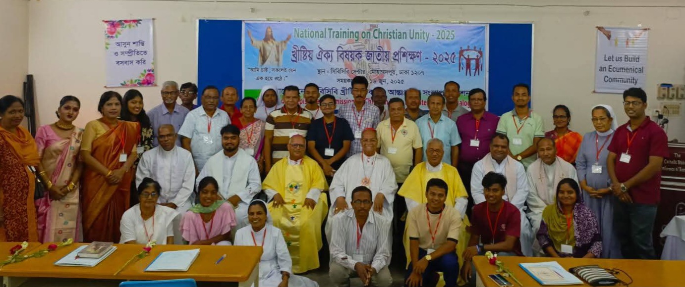 বিগত ১২ জুন থেকে ১৬ জুন পর্যন্ত ঢাকার মোহম্মদপুরে অবস্থিত সিবিসিবি সেন্টারে আটটি ধর্মপ্রদেশ থেকে ৪০জন অংশগ্রহণকারী নিয়ে  “খ্রীষ্টিয় ঐক্য” তথা “আন্তঃমাণ্ডলিক ঐক্য” বিষয়ক জাতীয় প্রশিক্ষণ অনুষ্ঠিত হয়েছে। যিশুর বাণীকে প্রতিপাদ্য করে প্রশিক্ষণটির মূলসুর ছিল “আমি চাই তারা সবাই যেন এক হয়।” প্রশিক্ষণটির উদ্বোধনী অনুষ্ঠানে প্রথমেই শুভেচ্ছা বক্তব্য রখেন কমিশনের সেক্রেটারী ফাদার প্যাট্রিক গমেজ  । প্রদীপ প্রজ্জ্বলন করেন কমিশনের সভাপতি আর্চবিশপ লরেন্স সুব্রত হাওলাদার সিএসসি, মহামান্য কার্ডিনাল প্যাট্রিক ডি’ রোজারিও সিএসসি এবং কমিশনের সেক্রেটারীসহ প্রত্যেক ধর্মপ্রদেশের প্রতিনিধি। উদ্বোধনী বক্তব্যে সভাপতি আর্চবিশপ হাওলাদার সবাইকে শুভেচ্ছা-স্বাগতম জানান এবং অংশগ্রহণকারীগণকে প্রশিক্ষণটির লক্ষ্য-উদ্ধেশ্য জানিয়ে দেবার পর প্রশিক্ষণটির শুভ উদ্বোধন করেন।